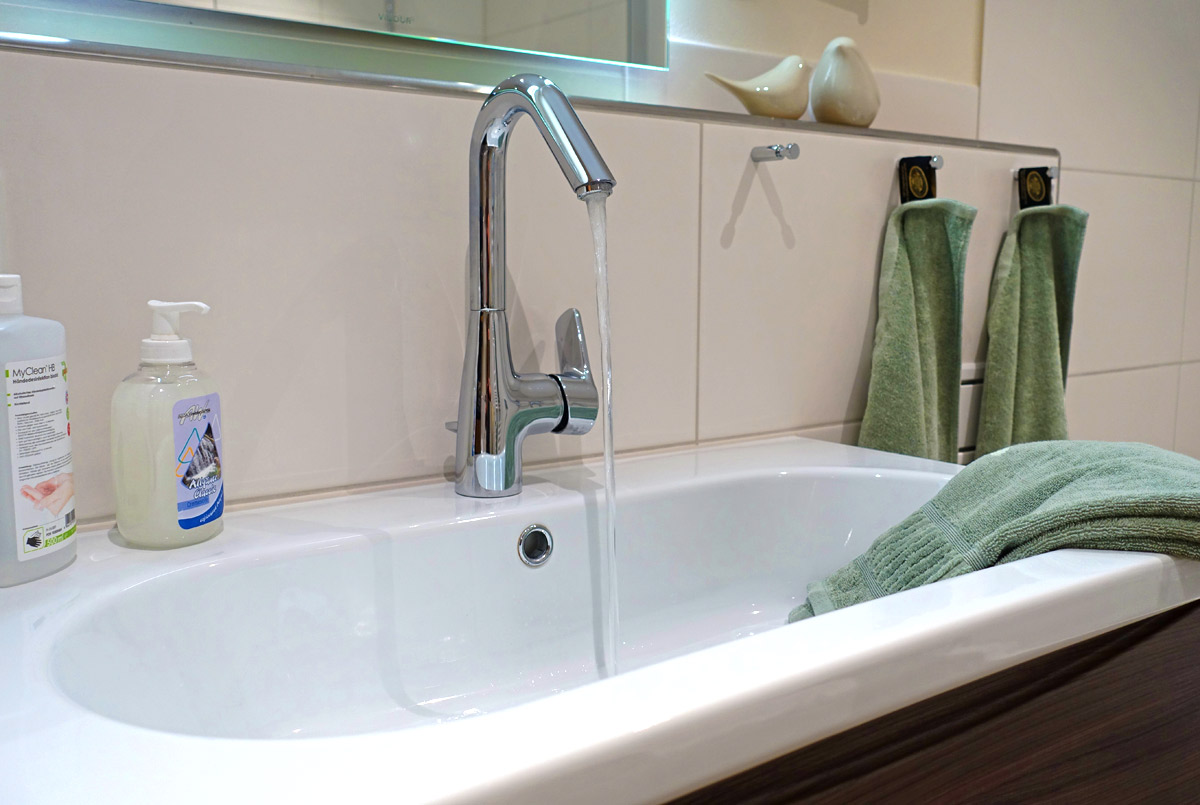 Notwendige Verbrauchsgegenstände sind bereits vorhanden, um unnötigen Neukauf und zusätzlichen Abfall zu vermeiden – darunter Spülmittel, Shampoo, Spülmaschinentabs, Toilettenpapier etc.