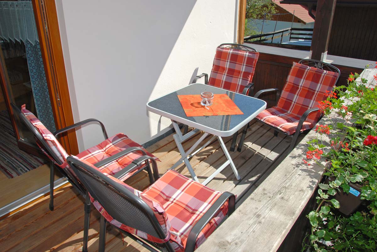 Der große Südbalkon eröffnet einen schönen Blick auf die Alpspitze und die umliegende Ortschaft.